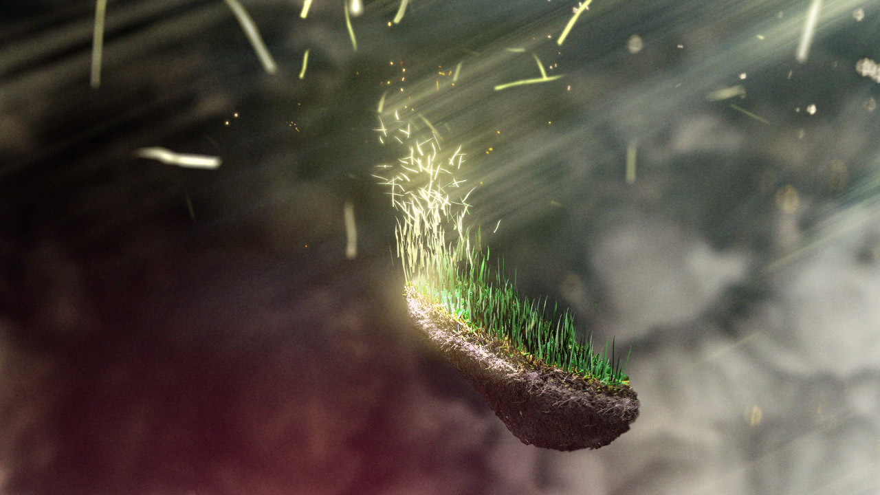 Massive landmasses are revealed by rays of light which all lead to the Estadio de Luz, the stadium holding the 2013 UEFA soccer championship.